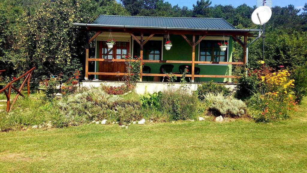 Das 30 m² große Holzhaus befindet sich auf einem 1291 m² großen Grundstück mit unverbaubarem Panoramablick im nördlichsten Teil von Balatonfüred, eingebettet in die Natur. Nördlicher Nachbar des Grundstücks ist der Wald.