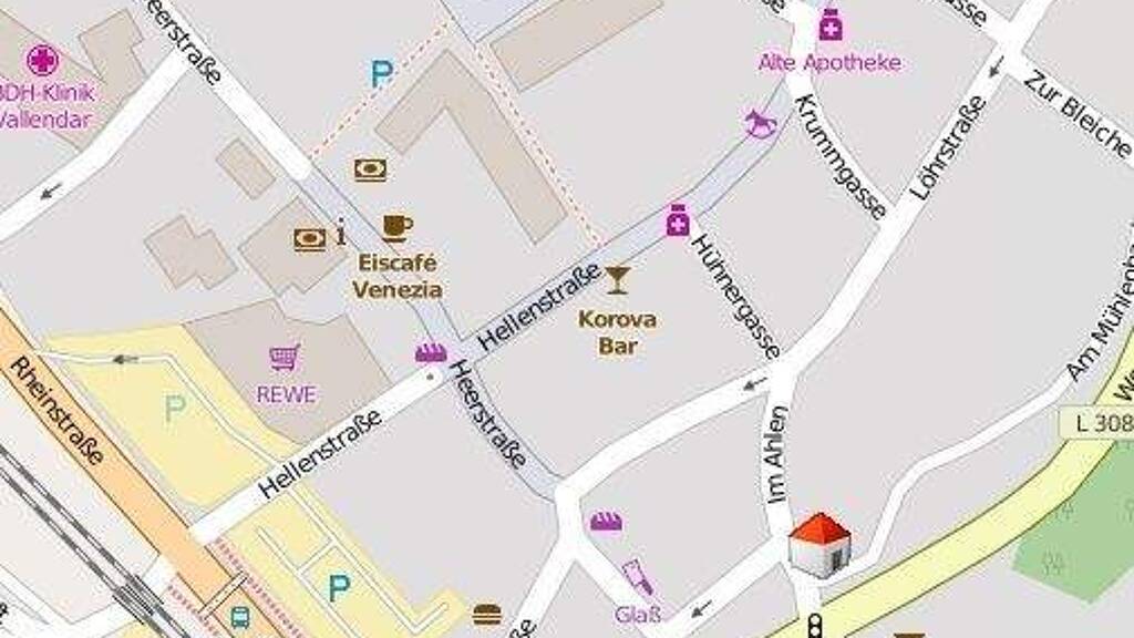 Im Zentrum von Vallendar gelegen. Kurze Wege in die Fußgängerzone, zu Ärzten, Apotheken, Einkaufsmöglichkeiten, Banken, Bushalt und Bahnhof (und zur WHU). Gute Anbindung an das Fernstraßennetz über die Bundesstraße B42 zu den Autobahnen A48, A61 und A3.