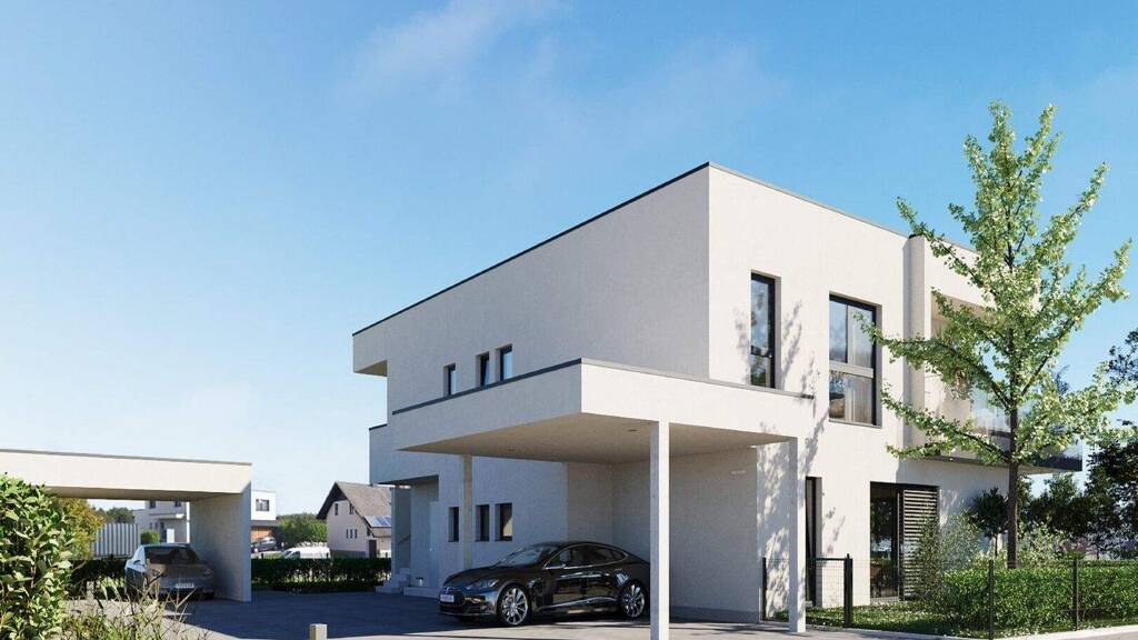 Zusätzlich erwerbbar ist das Doppelcarport und eine weiter Parkfläche im Freien, wo bei Bedarf selbstverständlich auch E-Ladestationen errichtet werden können.