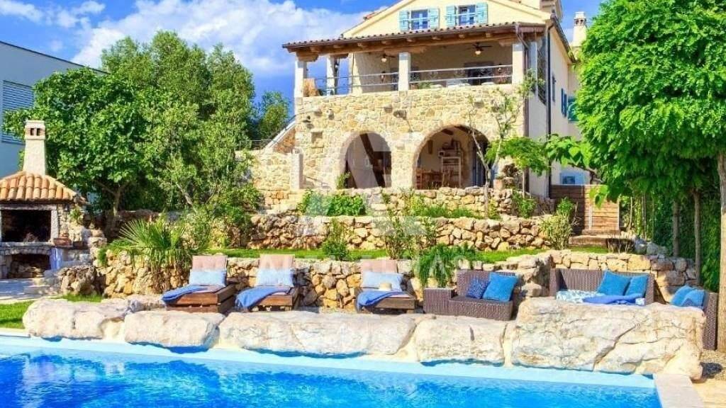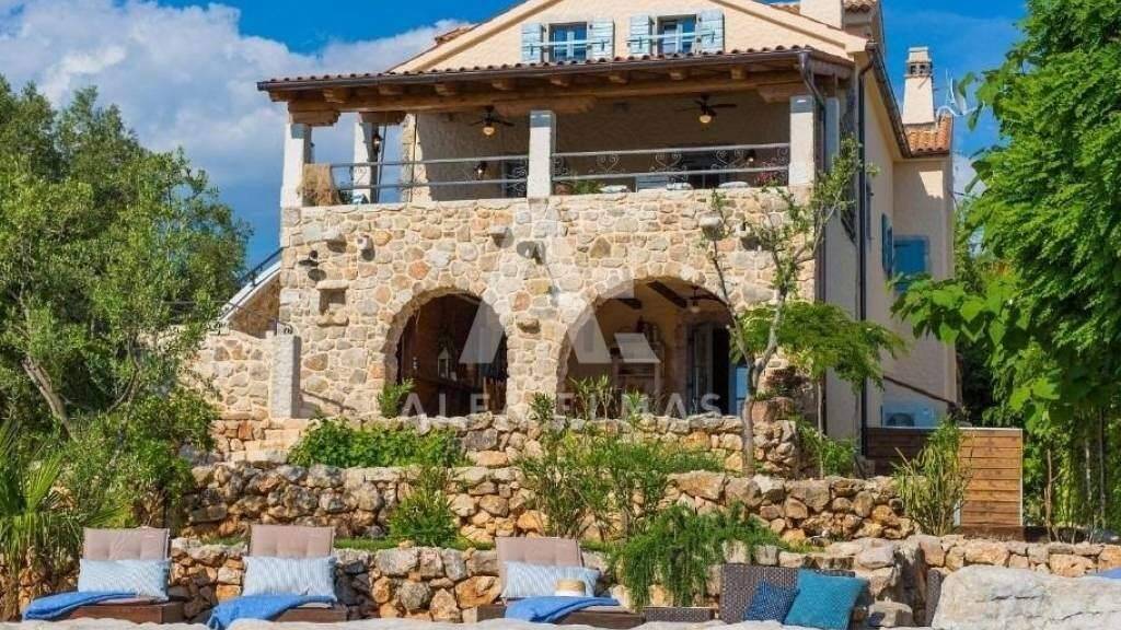 Im Erdgeschoss der Steinvilla befinden sich ein Wohnzimmer, ein Esszimmer und eine Küche, die zu einer Einheit kombiniert sind, der Raum selbst hat eine rustikale Version, schöne Steinböden, Holzbalken und eine rustikale Küche, die dem Raum eine angenehme und warme Atmosphäre verleihen . Vom Wohnzimmer gibt es einen Ausgang zur überdachten Außenterrasse, von der aus man einen wunderbaren Blick auf den angelegten Garten im mediterranen Stil mit Sonnendeck und Swimmingpool hat, der über eine Steintreppe zu erreichen ist. Auf dem gepflegten Grundstück der Villa in Malinska gibt es eine Lounge, eine Outdoor-Küche und einen großen Tisch mit Bank, perfekt zum geselligen Beisammensein und Genießen bei jedem Wetter. Auf der ersten Etage befinden sich zwei Schlafzimmer, ein Badezimmer, eine überdachte Terrasse mit herrlichem Blick auf das Meer!! Eine Innentreppe führt zum Dachgeschoss, wo sich zwei Schlafzimmer und ein Badezimmer befinden. Die Villa wurde komplett adaptiert und neue Installationen wurden installiert, eine Wärmepumpe, ein Fan-Coli-System, Fußbodenheizung in den Bädern, automatische Bewässerung der Grünflächen, Parkplatz für drei Autos. Die Villa wurde nach höchsten Qualitätsstandards und mit viel Liebe zum Detail gebaut, die den Räumen einen angenehmen Eindruck verleihen und den zukünftigen Eigentümern ein wirklich einzigartiges Zuhause bieten.
