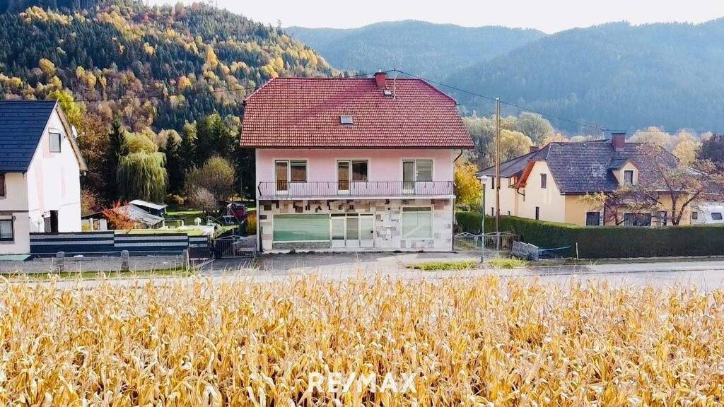 Dieses massiv gebaute Wohn- und Geschäftshaus befindet sich in Micheldorf unweit der Brauerei Hirt und des Flusslaufes der Metnitz.