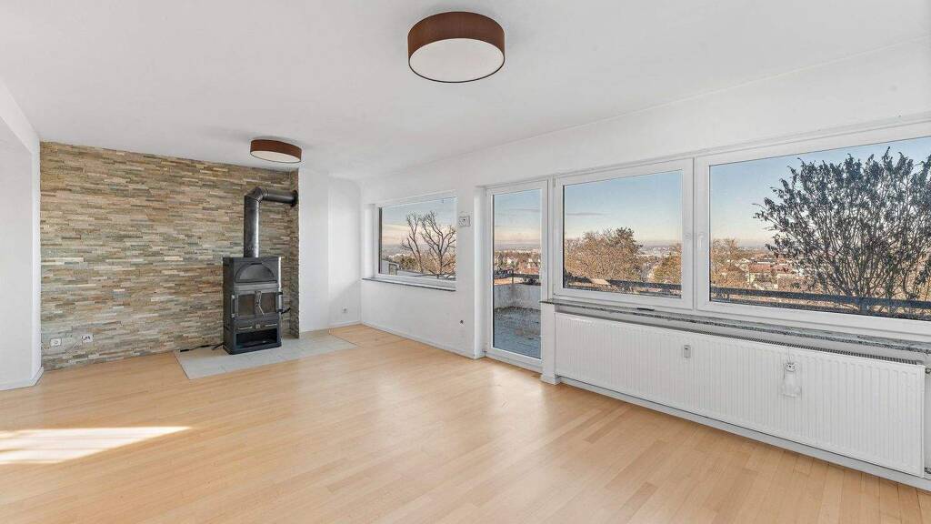 Im Erdgeschoss befinden sich die Küche, ein Gäste-WC, ein Schlafzimmer sowie der großzügige Wohn- und Essbereich mit direktem Zugang zur über 20 m² großen Terrasse. Von hier aus eröffnet sich ein weiter Blick über Böblingen - ein idealer Ort für entspannte Stunden im Freien und stimmungsvolle Sonnenuntergänge.