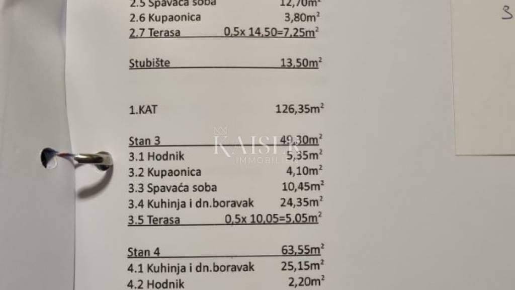 NEUBAU - Wohnungen in Povljana auf der Insel Pag, 350 m vom Strand entfernt! Zum Verkauf stehen 4 moderne Wohnungen im attraktiven Ort Povljana auf der Insel Pag. Das Gebäude besteht aus insgesamt 6 Wohneinheiten, wobei Wohnungen im Erdgeschoss und im ersten Stock verfügbar sind. Jede Wohnung wurde sorgfältig entworfen, um maximalen Komfort und Funktionalität zu bieten - ideal für einen Sommerurlaub, einen ganzjährigen Aufenthalt oder als Investition. Povljana ist ein ruhiger Küstenort im südlichen Teil der Insel Pag, bekannt für seine wunderschönen Strände, das kristallklare Meer und die familiäre Atmosphäre. In der Nähe des Gebäudes befinden sich Geschäfte, Restaurants, Cafés, Promenaden, eine Apotheke, Tennisplätze und zahlreiche weitere Annehmlichkeiten. Dank der hervorragenden Verkehrsanbindung erreichen Sie die Flughäfen Zadar und Zemunik schnell. Nutzen Sie die Gelegenheit und kaufen Sie zu äußerst günstigen Preisen - die aktuellen Preise liegen in dieser Gegend unter dem Durchschnitt! Die Preise werden mit fortschreitendem Baufortschritt steigen, daher ist jetzt der ideale Zeitpunkt für eine sichere und rentable Investition. Verfügbare Wohnungen: ERDGESCHOSS: Wohnung 1 - 49,95 m² (inkl. Terrasse 11,40 m² / rechnerisch 5,70 m²) - Preis: 151.900 € 1 Schlafzimmer, Bad, Küche und Wohnzimmer, Flur Wohnung 2 - 65,75 m² (inkl. Terrasse 14,50 m² / rechnerisch 7,25 m²) - Preis: 208.000 € 2 Schlafzimmer, 2 Bäder, Küche und Wohnzimmer, Flur 1. STOCK: Wohnung 3 - 49,30 m² (inkl. Terrasse 10,05 m² / rechnerisch 5,05 m²) - Preis: 147.000 € 1 Schlafzimmer, Bad, Küche und Wohnzimmer, Flur Wohnung 4 - 63,55 m² (inkl. Terrasse 12,80 m² / rechnerisch 6,05 m²) - Preis: 195.300 € 2 Schlafzimmer, 2 Badezimmer, Küche und Wohnzimmer, Flur. Jede Wohnung verfügt über einen eigenen Parkplatz im Innenhof des Gebäudes. Bauqualität und Ausstattung: Das Gebäude ist in Stahlbetonbauweise unter Verwendung hochwertiger Materialien errichtet. Die Fassade besteht aus einem ETICS-System mit Wärmedämmung aus 15 cm Polystyrol, was zu einer hohen Energieeffizienz beiträgt - ein Energiezertifikat der Güteklasse A+ liegt vor. In den Wohneinheiten sind PVC-Tischlerei und doppelt isoliertes Low-E-Glas verbaut, und für zusätzlichen Komfort sorgen elektrische Rollläden und Fußbodenheizung in den Badezimmern. Jedes Zimmer sowie das Wohnzimmer sind mit hochwertigen Klimaanlagen klimatisiert, die das ganze Jahr über für eine angenehme Temperatur sorgen. Die Bodenbeläge bestehen aus einer Kombination aus Keramikfliesen und Laminat. Die Materialien können während der Rohbauphase ausgewählt werden, wodurch die Wohnung nach den Wünschen des Käufers weiter personalisiert werden kann. Lage: Das Gebäude befindet sich in einer ausgezeichneten Mikrolage, nur 350 Meter vom Meer und dem Stadtzentrum entfernt. Povljana ist ein ruhiger und gepflegter Ort mit zahlreichen Stränden und familienfreundlichen Einrichtungen. Die Insel Pag bietet eine einzigartige Landschaft, klares Meer und ein reichhaltiges touristisches Angebot das ganze Jahr über. Fertigstellungstermin: Geplante Fertigstellung: Ende 2025. Die Maklerprovision für den Käufer beträgt 3 % zzgl. MwSt. und wird beim Kauf einer Immobilie nach Abschluss des ersten Rechtsgeschäfts fällig. Kontaktieren Sie uns für weitere Informationen und einen Besichtigungstermin. Tel.: +385915404646 E-Mail: vedran@kaiser-immobilien.hr
