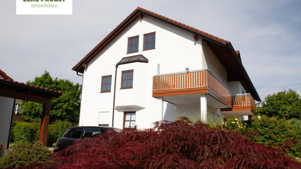 Diese Wohnung bietet Lebensqualität pur! Auf zwei Ebenen verteilen sich die lichtdurchfluteten und gutdurchdachten Räume zum Wohnen und Schlafen. Die Attraktion ist der übergroße Balkon mit dem weiten Blick in die grüne Gartenlandschaft sowie die geschmackvolle und hochwertige Ausstattung, wie die Rundbögen, der Erker, die Stuckarbeiten und die Möglichkeit, einen zusätzlichen Holzofen zu setzen. Auf der Ebene des Obergeschosses hat man einen großzügigen Raum als Wohn- und als Esszimmer, die Einbauküche sowie das Gäste-WC. Zum Schlafen gelangt man in das Dachgeschoss mit zwei attraktiven Räumen, die mit schreinergefertigten und geschmackvollen Einbauschränken ausgestattet sind. Besondere Aufmerksamkeit wurde dem glanzvollen Badezimmer gegeben, das eine richtige Wohlfühl-Oase geworden ist. Das Haus selbst erweckt einen soliden und gefälligen Eindruck. Zur Wohnung gehören eine Duplex-Garage und ein Fahrradstellplatz. Öffentliche Verkehrsmittel in die Innenstadt und zum Flughafen, Geschäfte, Schulen und KiTa befinden sich in unmittelbarer Nähe, ebenso Wanderwege in die Natur, die zu den mannigfachen Freizeitgestaltungsmöglichkeiten gehören.