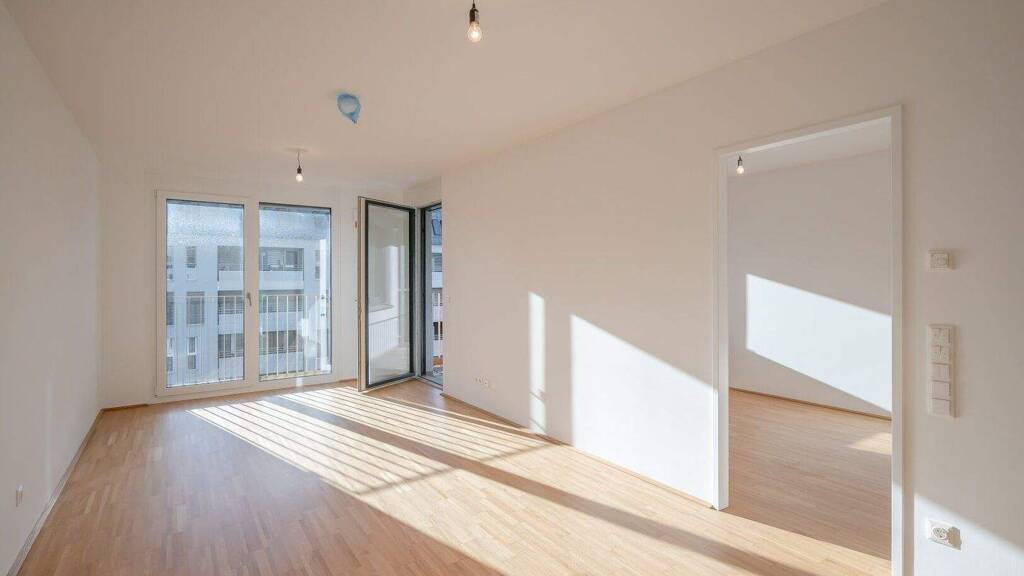 Zur Vermietung gelangt eine 2-Zimmer Wohnung in urbaner Atmosphäre. Die helle Wohnung verfügt über einen Vorraum, ein modernes Badezimmer mit Dusche und Waschmaschinenanschluss, ein separates WC, einen großzügigen Wohnbereich mit einer modernen, offenen Küche, einen Abstellraum, zwei Schlafzimmer die in den ruhigen Hinterhof ausgerichtet sind, sowie über eine Loggia. Die 3-fach-verglasten Fenster sind mit elektrischer Außenbeschattung ausgestattet. Die Wohnräume sind mit schönem Parkettboden ausgestattet und die Nassräume mit Fliesen verlegt.