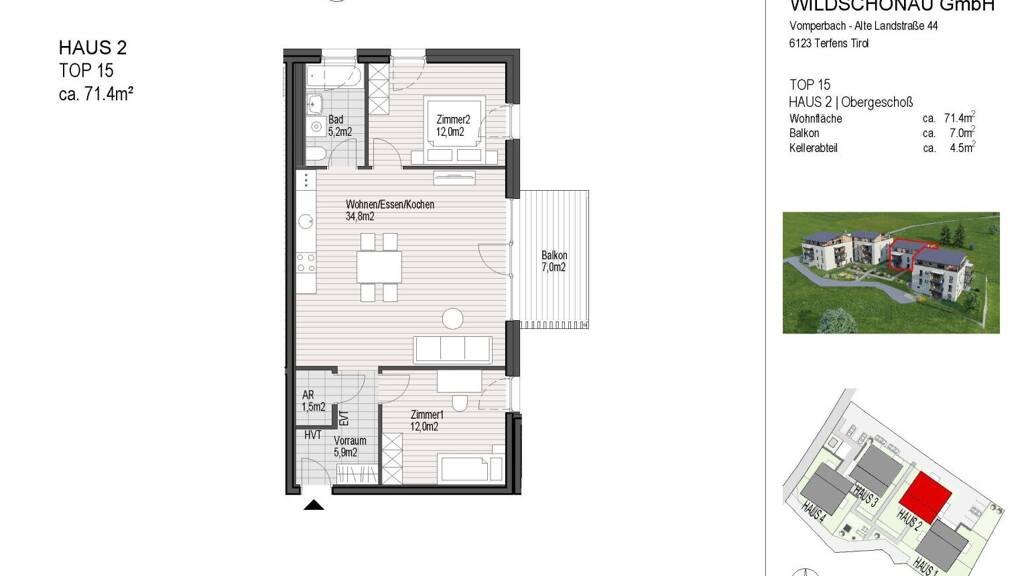 Anzahl Balkone: 1, Balkon-Terrassen-Fläche: 7,00 m², Kellerfläche: 4,50 m², Bundesland: Tirol, 4 Etagen, Wohnungsnr.: Top 15