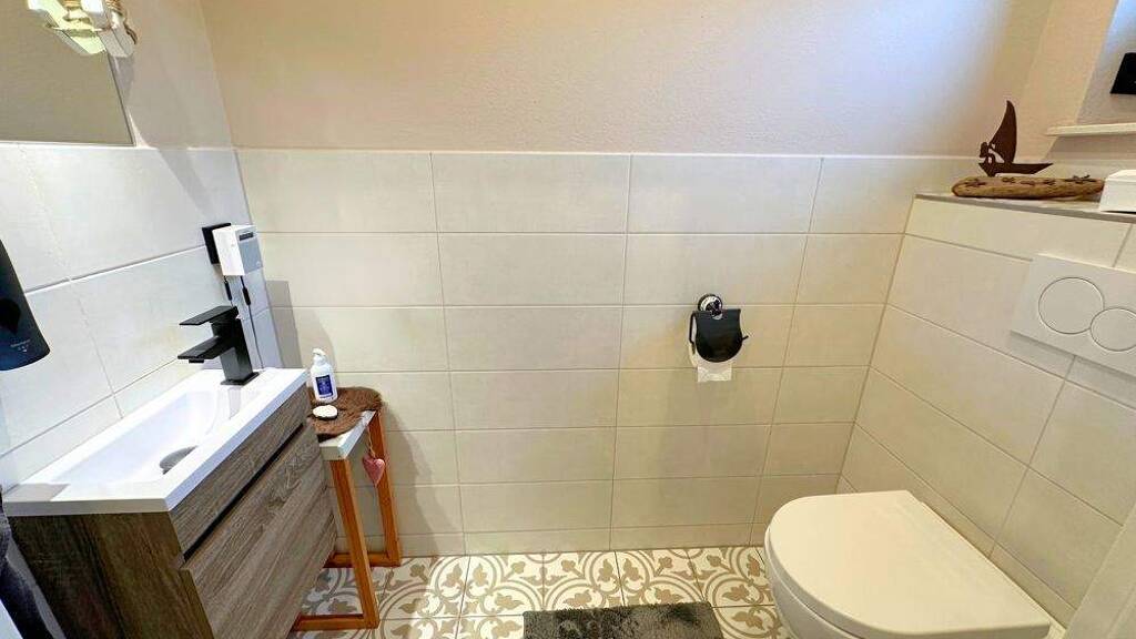 Im Inneren erwartet Sie eine offene Wohnküche im Landhausstil, die fließend in den geschmackvoll gestalteten Wohn- und Essbereich übergeht und ein großzügiges, lichtdurchflutetes Wohngefühl vermittelt. Vom Wohn- und Esszimmer aus gelangen Sie direkt auf die überdachte Terrasse, die zu entspannten Stunden im Freien einlädt. Das Schlafzimmer bietet mit einem begehbaren Kleiderschrank besonderen Komfort, ergänzt durch ein weiteres Zimmer, das sich flexibel als Gäste-, Arbeits- oder Hobbyraum nutzen lässt. Das Gästezimmer verfügt zudem über einen separaten Ausgang zu einer eigenen Terrasse und schafft so zusätzliche Privatsphäre. Ein geräumiges Duschbad sowie ein separates Gäste-WC unterstreichen die durchdachte Raumaufteilung. Abgerundet wird das Angebot durch einen praktischen Hauswirtschaftsraum, einen Dachboden mit zusätzlicher Abstellfläche.