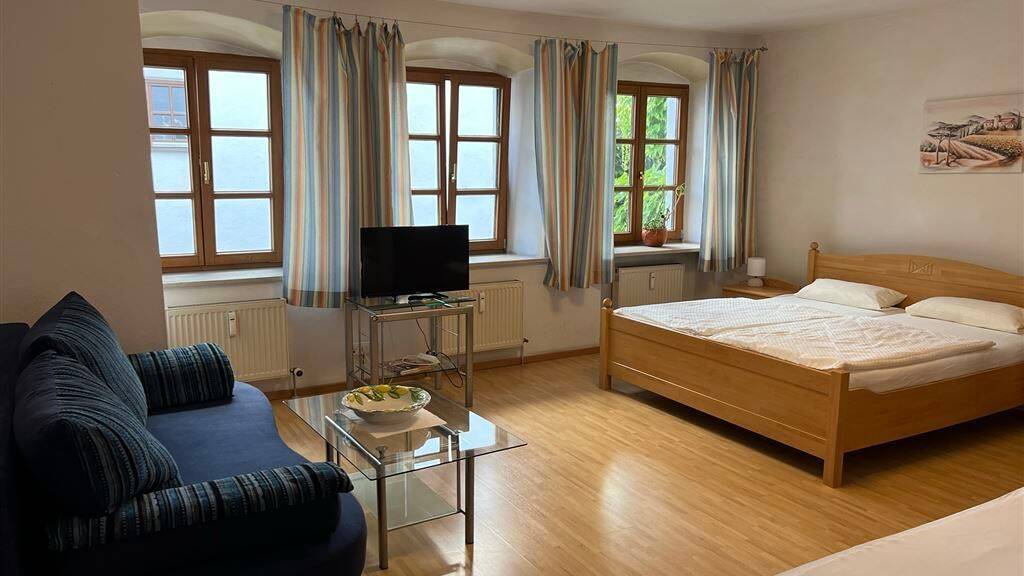 #Eckdaten auf einen Blick: - Historisches Gebäude aus dem Jahr 1505, 1987 kernsaniert - Lage: Alle vier Wohnungen befinden sich im 1. Obergeschoss - Zimmeranzahl: 10 - Kapazität: Bis zu 26 Betten bei voller Belegung - Nutzungsmöglichkeiten: Weiterführung als Pension oder Umbau in Privatwohnungen - Ausstattung: Betten, drei Einbauküchen und weiteres Mobiliar sind im Kaufpreis enthalten - Modernisierungen: - Küche 2019 - Böden 2015 - Bäder 2003 - weitere kleine Modernisierungen im Zuge der Instandhaltung - Heizung: Gasheizung aus dem Jahr 2003 - Fenster: Zweifachverglaste Holzsprossenfenster - Keller: Vier separate Abteile - (1x) Tiefgaragenstellplatz inklusive