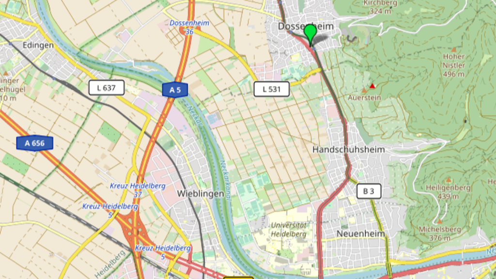 Die Anbindung an den ÖPNV sowie an den Individualverkehr sind optimal: Die ÖPNV-Haltestelle "Dossenheim Süd", die von den rnv-Linien 5 und 21 angefahren wird, befindet sich direkt am Objekt. Die Fahrzeit nach Heidelberg Innenstadt beträgt 15 Minuten. Mit dem Pkw ist Heidelberg in ca. 5-10 Minuten erreicht. Für einen schnellen Anschluss an das Autobahnnetz gibt es zwei Zubringer zur Autobahn A5, so dass Mannheim in ca. 15 Minuten und Weinheim in ca. 20 Minuten erreichbar sind.