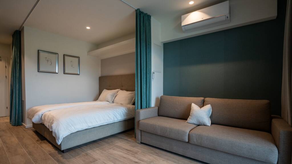 Diese im obersten Stockwerk gelegene Einheit besteht aus zwei separaten Mikroapartments mit gemeinsamem Vorraum. Jedes Apartment bietet ca. 26 m² Wohnfläche, einen eigenen Balkon mit rund 9 m², eine integrierte Küchenzeile, modernes Duschbad mit WC, hochwertige Schlafmöglichkeiten (inkl. Schlafsofa), TV-Anschluss und Parkettboden. Ein überdachter Stellplatz ist im Kaufpreis enthalten.
