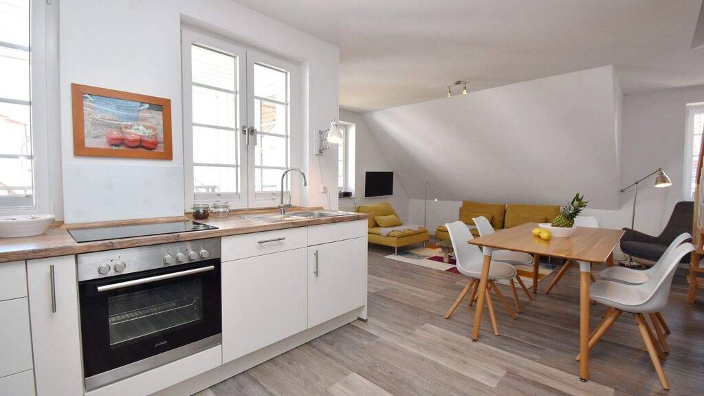 Auf folgende Ausstattungsmerkmale möchten wir hinweisen: individuelle, moderne Möbelierung; alle Schlafzimmer mit Doppelbetten ( 1,60 m x 2,00 m und 1,80 m x 2,00 m) moderne Duschbad, Kosmetikspiegel, Föhn moderne Einbauküche mit E- Herd und Ceranfeld, Geschirrspüler, Kühlschrank mit Tiefkühlfach Kaffeemaschine, Espressomaschine (Kapseln kostenlos), Wasserkocher, Toaster Bügelbrett, Bügeleisen, Staubsauger kostenlose Nutzung der Waschmaschine und des Trockners kostenloser Internetzugang Kabel-TV, moderne Flachbildfernseher windgeschützter und überdachter Balkon mit Tisch und Stühlen für die kleinen Gäste: Kinderbett und Kinderstuhl Bettwäsche und Handtücher sind im Mietpreis enthalten Haustiere sind leider nicht gestattet. Rauchen in der Wohnung ist leider nicht gestattet.