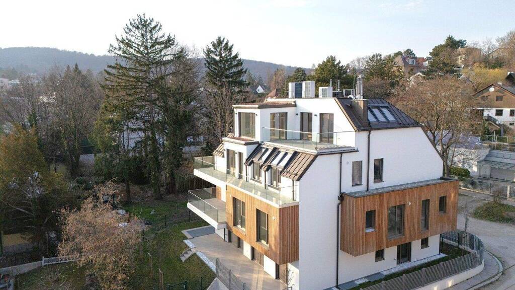 Es handelt sich um ein hochwertiges, sonniges, ca. 245m² großes, über 2 Ebenen angelegtes 5 Zimmer Dachterrassenapartment, mit direktem Ausgang vom Wohnzimmer auf die ca. 20m² große Südterrasse, im DG eines attraktiven, stilvoll, errichteten Wohnhauses, mit insgesamt 3 Wohneinheiten. Die unmittelbare Nähe, sowohl zu öffentlichen Verkehrsmitteln 53A, 54A, öffentlichen Einrichtungen und Einkaufsmöglichkeiten, als auch der hohe Freizeitwert durch den angrenzenden roten Berg und den nahgelegenen Wienerwald, erklären den hohen Wohlfühlwert dieser begehrten Lage.