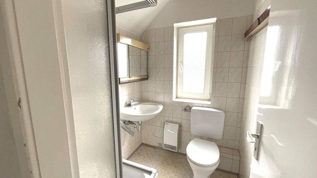 Erdgeschoss: . KĂĽche mit Essplatz . Helles Wohn-/Esszimmer . Kleines Badezimmer mit Wanne und Tageslicht