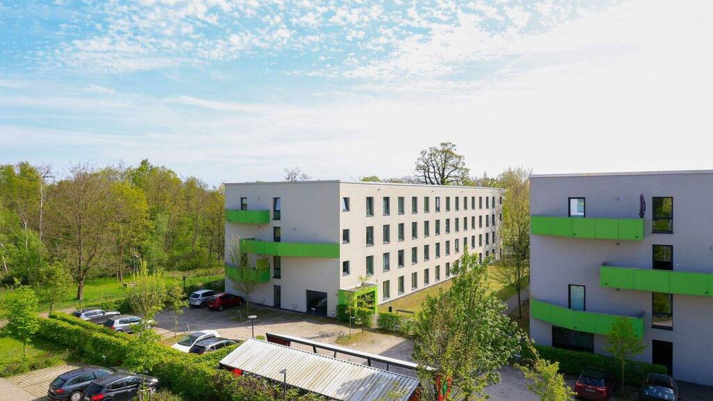 Hotspot: Potsdam! Hier liegt die von Grünflächen umrahmte ZIMMEREI nahe dem Volkspark, der nicht nur sofort Lust auf Picknicks, Sport und Grillpartys macht, sondern sich auch in unmittelbarer Nähe zur Uni befindet. Mit ihren vielen verschiedenen Community-Flächen bietet DIE ZIMMEREI Potsdam übrigens besonders viel Raum für Begegnung.