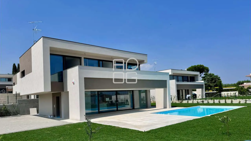 In einer exklusiven Umgebung, nur wenige Meter vom See entfernt, mit direktem Zugang über eine Straße und einem allgemeinen Bereich, in dem Sie sich vor dem See entspannen oder in sein Wasser eintauchen können, bieten wir diese prestigeträchtige freistehende Villa mit modernem Design zum Verkauf an, die bald fertiggestellt und übergeben wird. Die Immobilie befindet sich in einer eleganten und prestigeträchtigen Wohngegend und wurde mit den modernsten Bautechnologien in der Energieklasse A gebaut. Die Villa verfügt über einen separaten Eingang mit privaten Parkplätzen im Erdgeschoss und erstreckt sich über zwei Etagen im Obergeschoss. Im Erdgeschoss befindet sich ein geräumiger Wohnbereich mit Küche und Badezimmer, insgesamt ca. 94 Quadratmeter, mit großen Fenstern und Blick auf einen überdachten Portikus von ca. 37 Quadratmetern und den 50 Quadratmeter großen privaten Swimmingpool, umgeben von einer Sonnenterrasse und einem exklusiven Garten. Im Obergeschoss besteht der Schlafbereich aus drei Doppelschlafzimmern, jedes mit eigenem Bad, umgeben von einer großen, sehr sonnigen Terrasse von etwa 35 Quadratmetern. Im Souterrain befinden sich zwei weitere Zimmer mit ihren jeweiligen Badezimmern, eine Waschküche und ein zusätzlicher Raum, der sich ideal für die Einrichtung eines Fitness- oder SPA-Bereichs eignet. Es besteht auch die Möglichkeit, eine Tiefgarage zu bauen. Die Ausstattung ist sehr hochwertig und kann nach den Vorgaben des Lastenheftes individuell gestaltet werden. Die privilegierte Umgebung, die Nähe zum See, die Aussicht auf den See, der raffinierte Kontext und die Art der Konstruktion machen diesen Vorschlag ideal sowohl als Hauptwohnsitz als auch als Ferienhaus, perfekt für diejenigen, die Ruhe, Komfort und Entspannung suchen. Für weitere Informationen stehen wir Ihnen auf Anfrage gerne zur Verfügung.