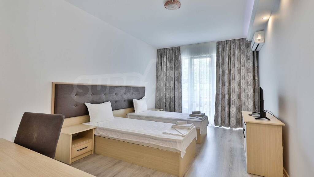 Wir präsentieren ein komfortables Studio mit einer Gesamtfläche von 37,5 Quadratmetern zum Verkauf in einem charmanten Küstenkomplex in erster Meereslinie, nur wenige Meter vom Strand des Ferienortes Lozenets entfernt.