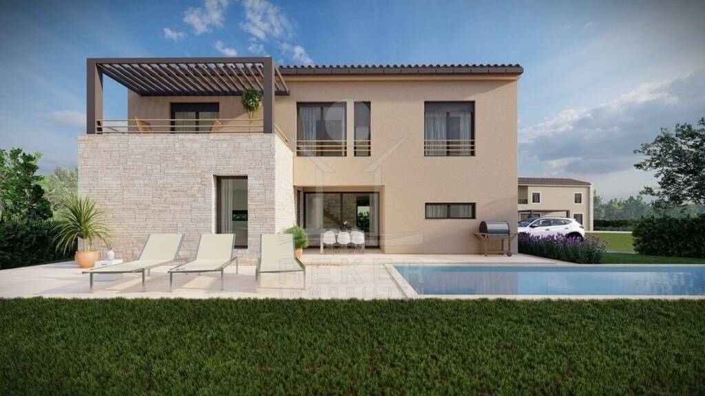 Kurzbeschreibung villa-baderna-neubau-pool Objekt Gebaut für Menschen mit Anspruch: Diese Villa vereint Ästhetik, Energieeffizienz (A+) und naturnahes Wohnen in perfekter Harmonie - inklusive Blick auf Istriens Landschaft und Horizont.
