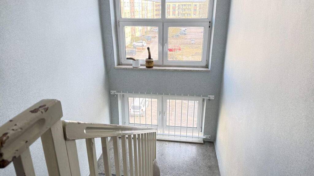 Im Untergeschoss befindet sich ein Keller, der als Stauraum genutzt werden kann. Die Wohnung ist ideal für Singles oder Paare, die eine komfortable und zentrale Unterkunft in Greifswald suchen.