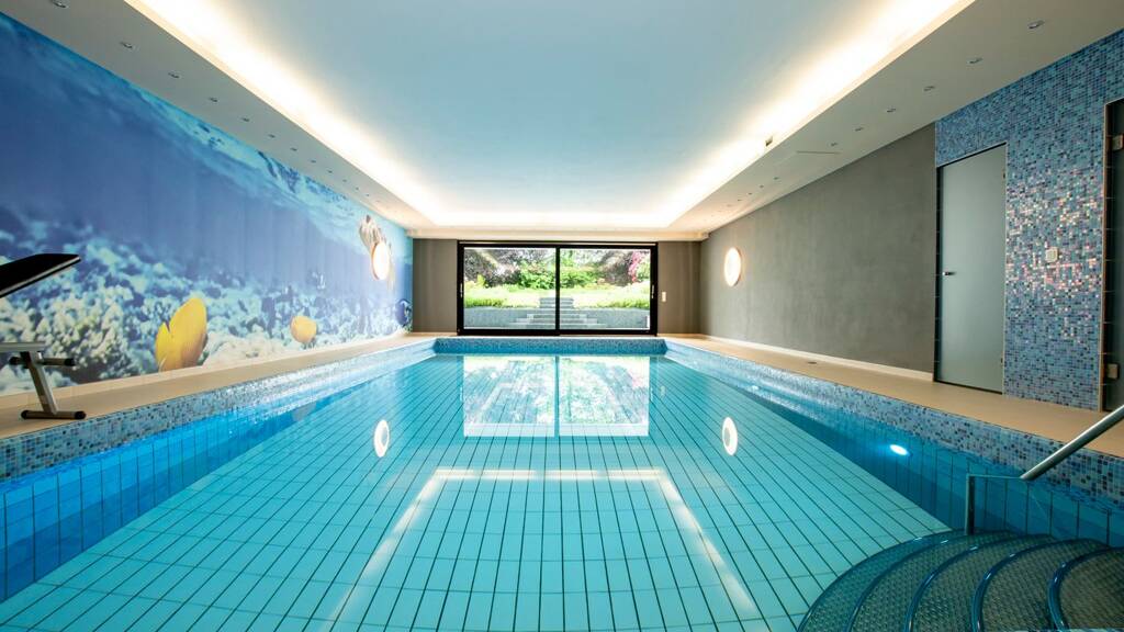 Privates Spa (ca. 165 m²) - Indoor-Pool (10x5) , Sauna & Fitnessbereich auf Boutique-Hotel-Niveau. Im Untergeschoss erwartet Sie ein Erlebnis, das sich sonst nur in exklusiven Resorts findet: Ein großzügiger Indoor-Poolbereich, ergänzt durch Sauna, Fitness- und Ruheflächen - eine Welt für sich, geschaffen für Regeneration, Gesundheit und luxuriöse Entschleunigung.