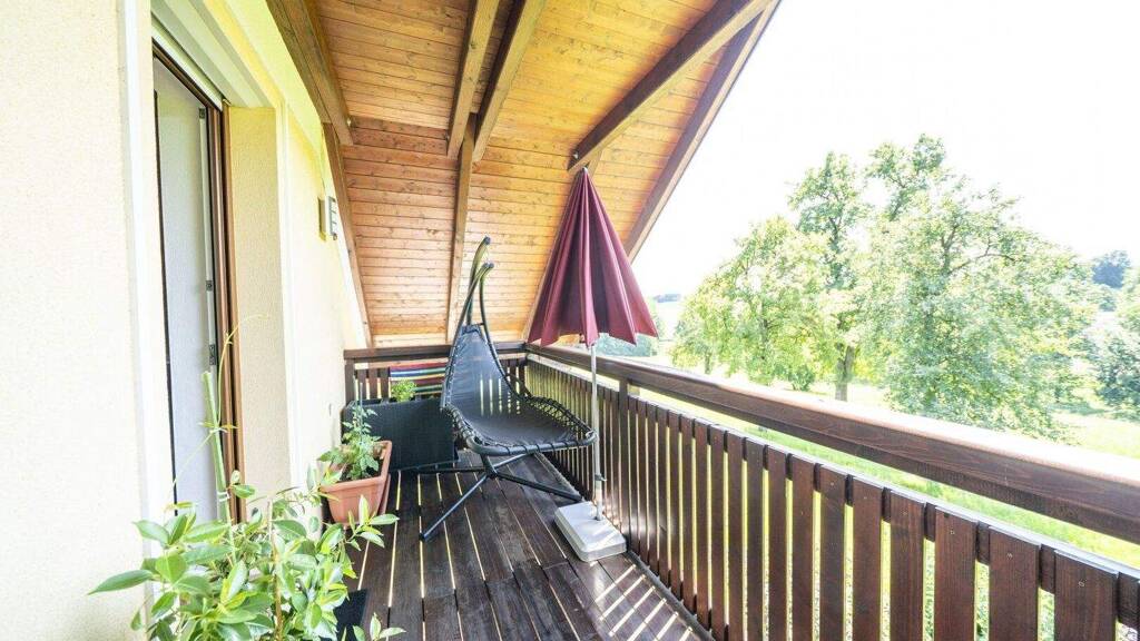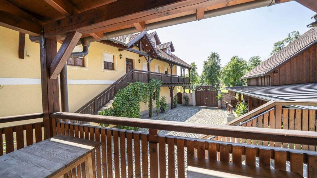 Das Wohnhaus mit zwei getrennten Wohneinheiten samt Lagerräumen im Untergeschoß schließt an den Innenhof des Landgasthofes an und bildet eine Einheit. Beide Wohneinheiten sind durch ein zentrales Stiegenhaus erschlossen. Die Einheit im EG bietet drei Zimmer, eine große Einbauküche, Bad und WC sowie einen großen Richtung Süden ausgerichteten Balkon mit Blick ins Grüne bis hin zur Bergwelt des Salzkammerguts. Die Wohnung im Dachgeschoß besteht aus fünf Zimmern samt voll ausgestatteter Einbauküche, Bad und WC getrennt sowie einem überdachten Südbalkon.