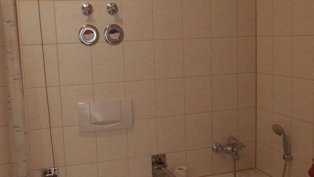 Das Badezimmer ist seniorengerecht ausgestattet mit Badewanne, bodengleicher Dusche mit rutschsicheren Bodenfliesen, Vorrichtung für einen Duschvorhang, Haltegriffen, Waschbecken und WC und unterstützt ein sicheres sowie selbstbestimmtes Wohnen im Alter.