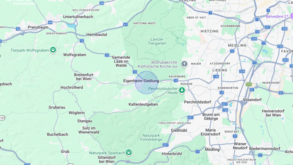 Die Liegenschaft befindet sich in einer ruhigen Gasse, jedoch unweit des Wiener Waldes, aber auch der Laaber Straße mit Anschluss an Kalksburg und zur Stadgrenze Wien.