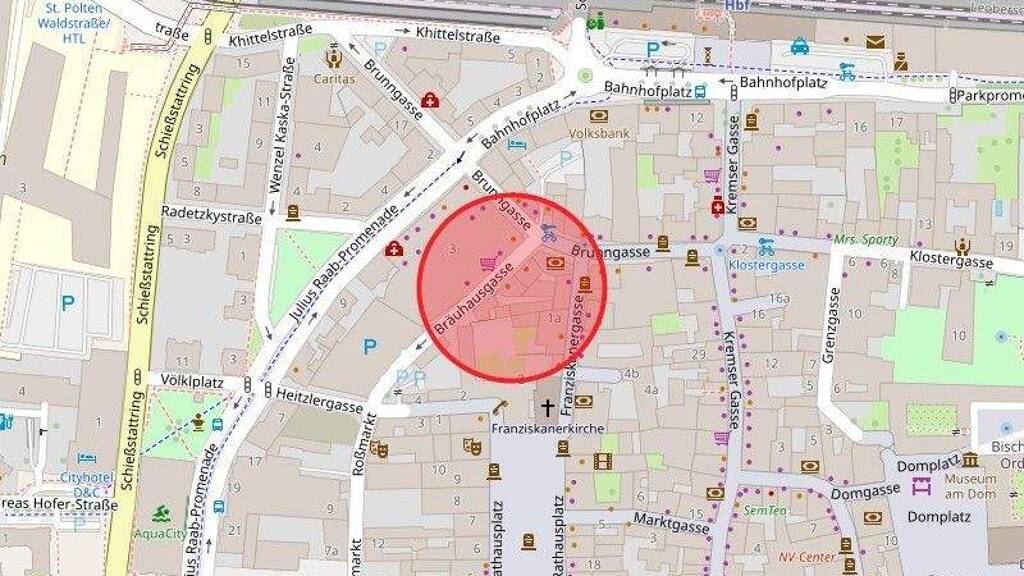 Die Wohnung ist in einer sehr guten Lage in der Fußgängerzone von St. Pölten situiert. Vor allem hinsichtlich Infrastruktur bleiben kaum Wünsche offen, denn das Einkaufszentrum Promenade befindet sich direkt gegenüber und bietet neben diversen Kleidungsgeschäften auch einen Bille, einen Bipa und mehrere medizinische Einrichtungen. Für all jene, welche auf die Bahn angewiesen sind ist es durchaus komfortabel, dass der Hauptbahnhof lediglich wenige Gehminuten entfernt ist.