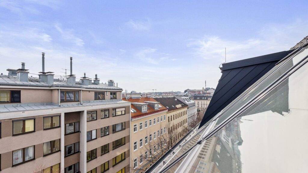 Wohnung Top 21: Die Wohnung erstreckt sich über das neu errichtete Dachgeschoß der Liegenschaft, das per Lift zu erreichen ist. Die Immobilie erstreckt sich über zwei Etagen und besticht mit einer einzigartigen Dachterrasse sowie einem ruhigen Balkon. Die Wohnfläche beträgt rund 125 m². Beim Betreten der Wohnung kommt man in den Eingangsbereich, der sich als exklusive Garderobe gestalten lässt. Über moderne Stufen gelangt man in die 2. Etage beziehungsweise den 7. Stock. Ein helles und geräumiges Wohnzimmer mit Zugang zum Balkon sowie der Dachterrasse stellt das Herzstück der Wohnung dar. Darüber hinaus gibt es zwei Schlafzimmer, zwei Badezimmer und ein Gäste-WC. Der Master-Bedroom verfügt über ein privates Badezimmer. Von der weitläufigen Dachterrasse aus hat man einen atemberaubenden Ausblick auf die umliegende Stadt sowie den Kahlenberg. Der 1.Bezirk mit Rathaus und Stephansdom scheinen zum Greifen nahe. Darüber hinaus verfügt die Wohnung über eine Fußbodenheizung mit Einzelraumsteuerung sowie über eine Videogegensprechanlage, eine Sicherheitseingangstüre und Alt-Wien-Stil Innentüren. Im gesamten Wohnbereich ist hochwertiger Parkettboden verlegt. Eine Klimaanlage ist vorhanden.
