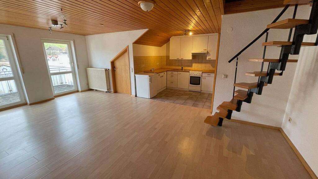 2-Zimmer-Dachgeschosswohnung mit groĂźem Balkon, EinbaukĂĽche, ausgebautem Dachspitz und Pkw-Stellplatz im Freien