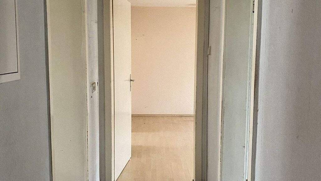 Die Wohnung befindet sich im 1. Obergeschoss eines Mehrfamilienhauses aus dem Jahr ca. 1954. Nach Eintritt in die Wohnung gelangen Sie rechter Hand in das Tageslichtbad mit Duschwanne und zur Küche. Linker Hand ist ein ca. 15 qm großes Schlafzimmer untergebracht. Geradeaus kommen Sie zum Wohnzimmer, welches ebenfalls als Durchgang zum Kinderzimmer dient. Hier befindet sich der Holzkachelofen mit Warmluftschächten, bei welchem der Einsatz vor einigen Jahren erneuert wurde. Ein Zentralheizung ist in der Wohnung bisher nicht verbaut, ein Anschluss für eine Gastherme liegt jedoch im Flur bereit. Die Wohnung befindet sich in einem renovierungsbedürftigen Zustand und freut sich über eine Modernisierung.