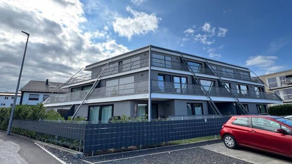 In der Karlstraße 38 in Langenau erwartet Sie eine ganz besondere Immobilie: eine großzügige Erdgeschosswohnung mit 98,58 m² Wohnfläche, die sich in einem architektonisch außergewöhnlichen Mehrfamilienhaus im pyramidenähnlichen Baustil befindet. Dieses Haus hebt sich durch seine markante Bauweise von klassischen Wohnanlagen ab und verleiht dem gesamten Anwesen einen modernen und unverwechselbaren Charakter.
