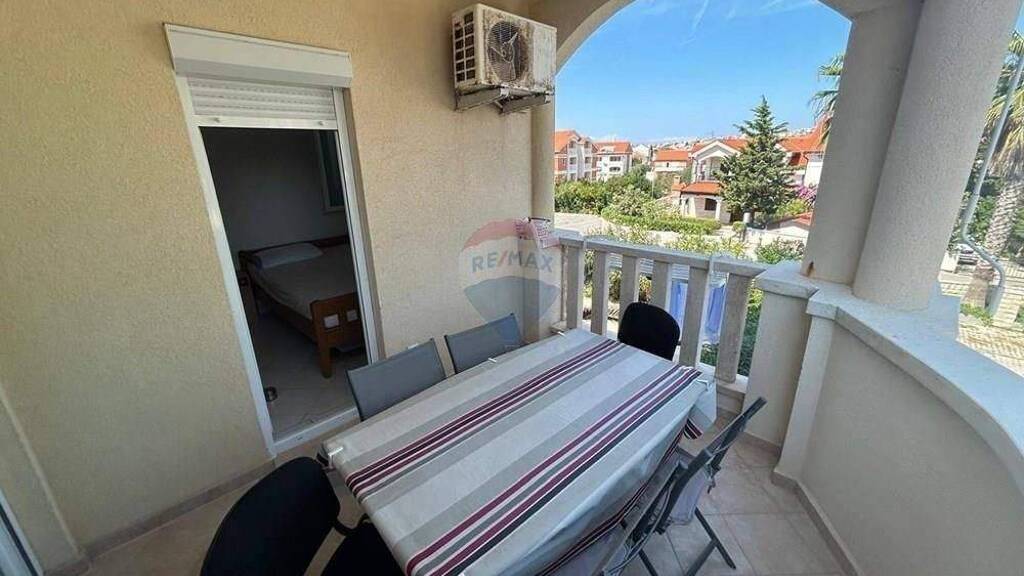 Die Wohnung besteht aus einem Schlafzimmer, einem Badezimmer, einer Wohnküche und einer Terrasse. Die Wohnung ist komplett möbliert und im mediterranen und modernen Stil eingerichtet, was ein angenehmes und ästhetisch ansprechendes Ambiente schafft. Die Küche mit Essbereich lädt zum geselligen Beisammensein und gemeinsamen Essen mit der Familie ein.