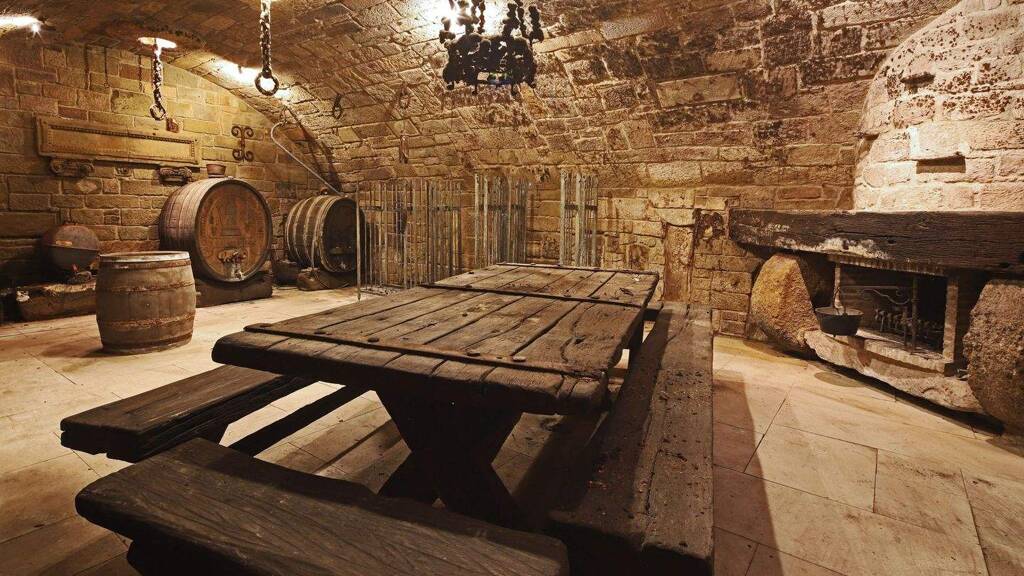Weinkeller: gebaut im Stil eines historichen Gewölbekellers mit ca, 54 m² Grundfläche und Deckenhöhe bis unter das Gewölbe ca. 3,20 m. Bauliche Zu- und Abluft, Wasser und Stromanschluß, offener Kamin.