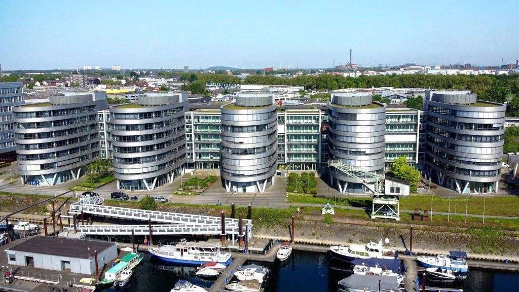 Die fünf in Bootsform errichteten Baukörper direkt an der Uferpromenade des Duisburger Innenhafens bilden die in jeder Hinsicht außergewöhnliche Immobilie "FiveBoats". Damit folgt der britische Stararchitekt Sir Nicholas Grimshaw einem hohen Anspruch: Wasserblick für alle! Durch große Glasflächen blicken Ihre Mitarbeiter auf das Hafenbecken, die Altstadt und das gegenüberliegende Südufer mit seiner attraktiven Speicherzeile. "FiveBoats" ist damit DER repräsentative Firmensitz in Duisburg!