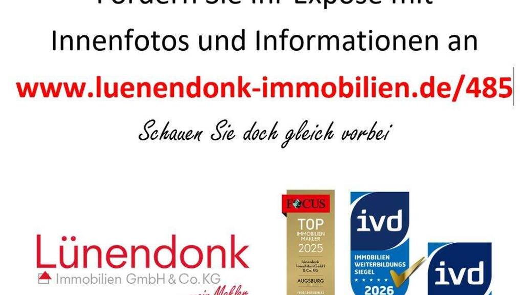Wir weisen darauf hin, dass dieses Angebot für den Erwerber provisionspflichtig ist. Bei Abschluss eines Kaufvertrages bezahlt der Käufer Maklercourtage in Höhe von 3,57 % inkl. gesetzlicher MwSt. des beurkundeten Kaufpreises an Firma Lünendonk Immobilien GmbH & Co. KG, Hochfeldstraße 71 in 86159 Augsburg, verdient und fällig bei Vertragsabschluss. Das Angebot ist freibleibend, vertraulich und nur für den Empfänger persönlich bestimmt. Eine Weitergabe der Informationen ist nicht gestattet. Der Makler ist für den Vertragspartner / Verkäufer in gleicher Höhe provisionspflichtig tätig.