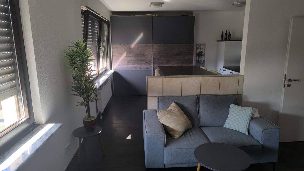Beim Betreten der Wohnung gelangt man in den großzügigen Wohn- und Schlafbereich, der durch seine offene Gestaltung viel Platz zum Entspannen und Leben bietet. Die Fenster sorgen für eine helle und freundliche Atmosphäre.Die angrenzende Küche ist modern ausgestattet und verfügt über alle notwendigen Geräte für die Zubereitung von Mahlzeiten. Das Badezimmer ist ebenfalls zeitgemäß gestaltet und bietet eine komfortable Dusche.