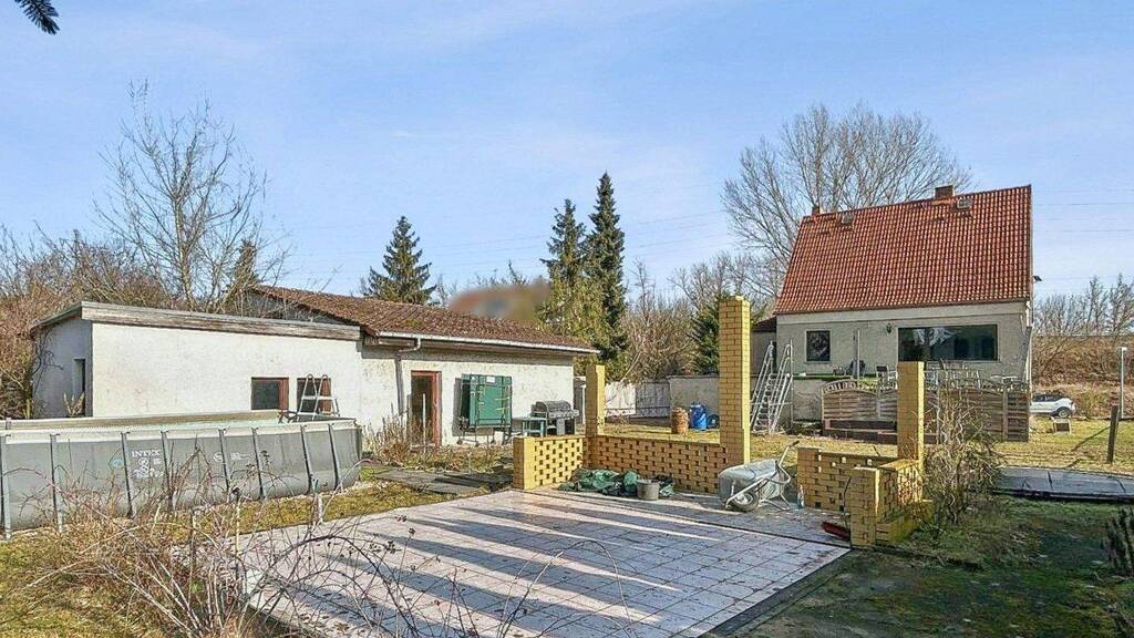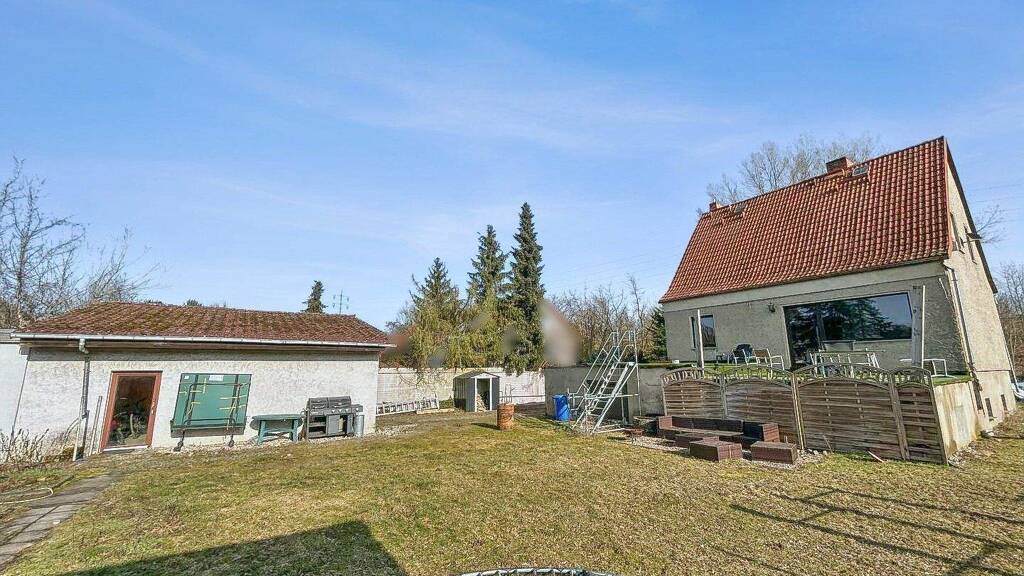 Dieses Haus, ca. 1988 errichtet, bietet deutlich mehr als von außen zu sehen ist. Relativ unscheinbar steht es im vorderen Teil eines großen Grundstücks, welches somit optimal für Freizeit und Erholung nutzbar ist. Sie betreten das Haus über eine Treppe und kommen in die geflieste Veranda, welche als Windfang dient, bevor Sie in den Flur gelangen. Linker Hand befindet sich gleich ein kleines Gäste-WC. Rechts kommen Sie in die geräumige Küche. Daneben befindet sich das schöne Wohnzimmer mit Zugang zur sehr großen Terrasse, welche sich über dem gesamten, ca. 1992 errichteten Anbau befindet. Des Weiteren haben Sie vom Wohnzimmer aus den Zugang zu einem weiteren Zimmer, optimal als Arbeitszimmer nutzbar. Über die Treppe im Flur gehen Sie in das Obergeschoss, hier befinden sich zwei große und ein kleineres Zimmer sowie das Bad. Zurück über die Treppe kommen Sie in das Untergeschoss, welches durch die hohen Räume sehr gut nutzbar ist. Hier wurden zwei Gästezimmer eingerichtet. Über den großen, mittig liegenden Raum erreichen Sie den Barbereich mit Nebenraum. Diese Räumlichkeiten sind optimal für Familienfeiern nutzbar, Sie können ein gemütliches Gläschen mit Freunden trinken u. v. m.. Von hier aus kommen Sie auch in den Garten und haben kurze Wege zur Garage mit zwei Räumen.. Dieses Potenzial lässt sich nur im Zuge einer Besichtigung vollständig erfassen - nutzen Sie die Gelegenheit und schauen Sie sich dieses tolle Angebot an.