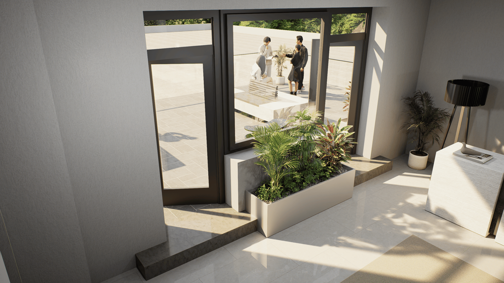 - Große Fensterfronten: Die hellen, großzügigen Fensterfronten durchfluten die Räume mit Tageslicht und schaffen eine
