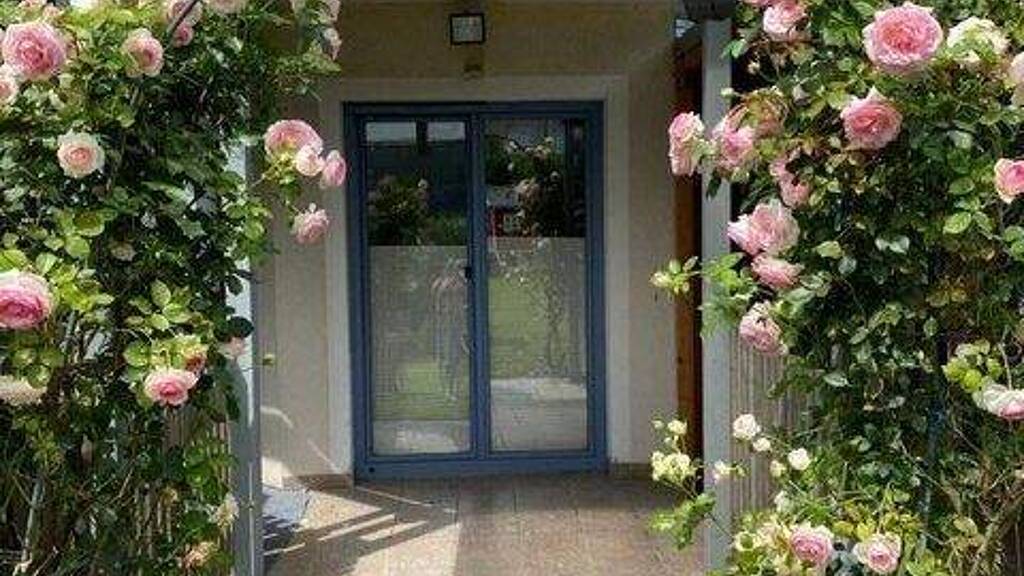 Im Erdgeschoss befindet sich ein Büro - auch ideal als Praxis oder Werkstatt nutzbar. Der exklusive Wohnbereich im Obergeschoss liegt auf einer Ebene mit Garten und Pool und schafft ein einzigartiges Wohngefühl.