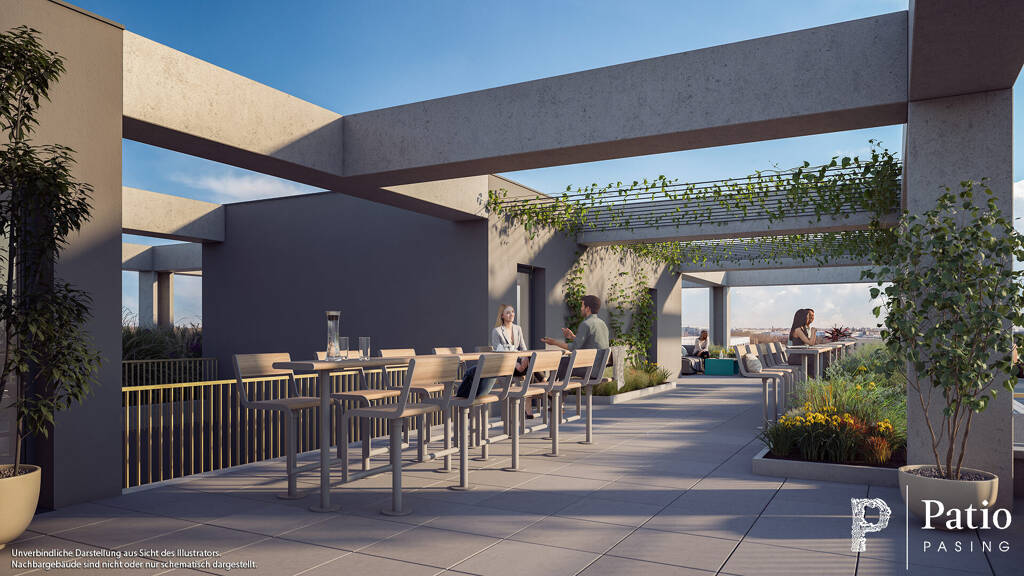 Lebendig und urban, grün und ruhig, modern und vielfältig: Patio Pasing steht für abwechslungsreiches städtisches Wohnen in stilprägender Hof-Architektur. Mit Patio Pasing entstehen facettenreiche 1- bis 4-Zimmer-Eigentumswohnungen. Jede Wohnung verfügt über eine hochwertige Markenausstattung mit Wahlmöglichkeiten sowie größtenteils über eine großzügige Terrasse, Balkon, Dachterrasse oder über eine geschützte Loggia als "grünes Zimmer" im Freien.
