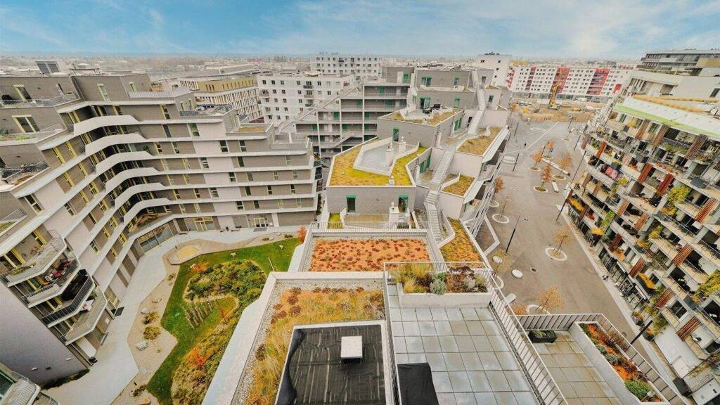 Janis-Joplin-Promenade: Das im Jahr 2020 fertiggestellte Wohnhaus liegt in der ersten Seereihe, unmittelbar neben dem HoHo (Holz-Hybrid-Hochhaus Seestadt Aspern) und der U2 Station Seestadt. Die Maisonette befindet sich im 10. und 11. Liftstock und verfügt über zwei Eingänge. Die Wohnung ist aufgrund der herausragenden Lage, der Ausführungsqualität und durch die große Freifläche unverwechselbar.