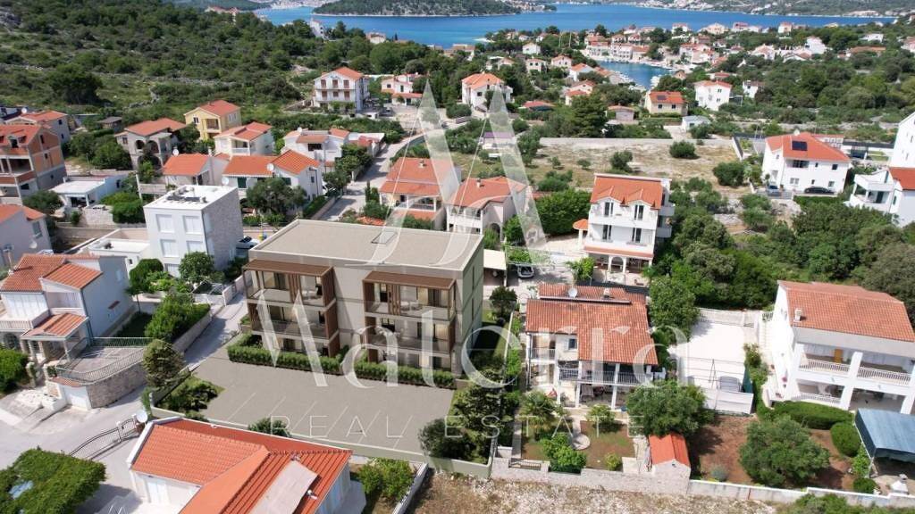 Zum Verkauf steht eine moderne Zweizimmerwohnung mit Meerblick in der ruhigen Bucht Stivasnica, in der Nähe von Rogoznica. Die Wohnung befindet sich im ersten Stock eines modernen Neubaus und verfügt über eine Gesamtwohnfläche von 77,81 m².