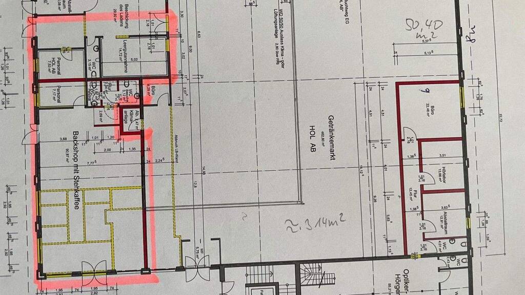 Automatiktür, TV, Internet vorhanden, Eine Lüftungsanlage vorhanden, Fettabscheider vorhanden. 3 m hoher Innenraum. Raume sind hell gestrichen.