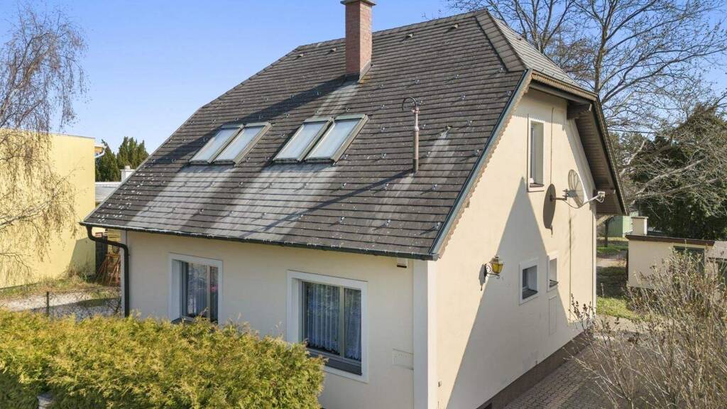 Sind Sie auf der Suche nach einem schmucken Einfamilienhaus mit großem Garten südlich von Wien? Dann könnte diese Immobilie genau das Richtige für Sie sein. Hier können Sie die ruhige Lage und ein Grundstück mit rund 1.000 m² genießen. Mit einer Wohnfläche von 116 m² bietet diese gepflegte Immobilie mit einem Baujahr Anfang der 50er Jahre ein sehr behagliches Zuhause. Im Erdgeschoss befindet sich der gemütliche Wohn- Essraum mit Kachelofen, eine große Küche und ein Gästebad. Das Obergeschoss wurde nachträglich im Jahr 1984 ausgebaut. Die zwei Schlafzimmer punkten mit einem sehr angenehmen Ambiente. Zusätzlich wurden ein weiteres Badezimmer, ein heller Arbeitsbereich und eine Leseecke integriert.