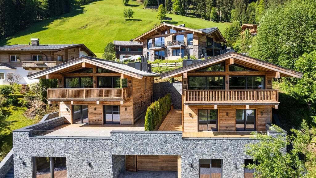 Traditionell und modern in der Gestaltung, vielfältig in den individuellen Möglichkeiten und hochwertig in der Umsetzung, so erfüllt dieses hier angebotene und gerade fertig gestellte Chalet höchste Maßstäbe an die architektonische Konzeption. Hier genießen Sie einen individuellen Rückzugsort mit hoher Privatsphäre und schönen Ausblicken auf die Tiroler Bergwelt. Außen überzeugt die stilvolle, traditionell mit viel Altholz, Naturstein und bodentiefen Fensterfronten versehene Fassade und innen ein wohldurchdachtes und kompromisslos umgesetztes Wohnkonzept. Die Innenausstattung überzeugt durch zeitlose Qualität und klassische Eleganz und wurde durch sorgfältig gewählte Materialien wie Altholz, Naturstein, Vollholztu?ren in Altholz, edle Armaturen und Fliesen bewusst in einem moderneren Tiroler Stil gehalten. Aufgrund der attraktiven Hanglage betreten Sie diese Luxusimmobilie im Untergeschoß. Eine großzügig bemessene Diele sorgt für den sehr stimmigen ersten Eindruck. Auf dieser Ebene befinden sich ein Schlafzimmer samt en suite Badezimmer sowie der Wellnessbereich mit einer Altholzsauna, Fitness- /Relaxzone und einer Wellness-Dusche. Über bodentiefe Glastüren gelangen Sie sowohl vom Schlafzimmer als auch vom Wellnessbereich aus direkt auf die vorgelagerten Sonnenterrassen. Über den Personenlift oder die Treppe gelangen Sie in das Erdgeschoß. Das stimmige Wohnkonzept sieht auf dieser Ebene zwei gleichwertige Schlafzimmer mit Bädern en suite vor. Über Terrassentüren aus Alu und Glas gelangen Sie direkt in den Garten beziehungsweise auf die Terrassen. Die großzügig bemessene Mastersuite bettet sich ebenfalls auf dieser Ebene ein.Das eigentliche Herzstück der Immobilie, der über 70 Quadratmetern große Wohn-Essbereich, befindet sich im Dachgeschoss. Durch die durchgehende südwestliche, bodentiefe Glasfront gelangt ausgesprochen viel Tageslicht ins Innere dieser Etage. Die Profiku?che mit Fronten aus Altholz und Geräten von Bora Professionell und Gaggenau ist perfekt ins wohldurchdachte Wohnkonzept integriert. Erwähnenswert sind sicherlich der von Meisterhand gefertigte Altholzsichtdachstuhl, der Kamin, die geräumige Terrasse und der gemütliche Balkon. Eine Gästetoilette und eine praktische Speis komplettieren das Wohnerlebnis auf dieser Ebene.Bei der Ausstattung dieser Immobilie wird größter Wert auf qualitative Hochwertigkeit gelegt und ausschließlich sorgfältig gewählte Materialien sowie ein BUS-System verwendet. Für Ihren Fuhrpark stehen Ihnen zwei Stellplätze in der Tiefgarage und ein Außenstellplatz zur Verfügung. Das Luxuschalet ist komplett autark und teilt sich ausschließlich die Tiefgarage mit einem weiteren Immobilie. Mit dieser Immobilie erwirbt man ein attraktives Neubauluxuschalet in begehrter Lage von Kitzbühel (nur noch ein Chalet verfügbar) mit einem sehr guten Preis-Leistungs-Verhältnis. Gelegenheiten wie diese gibt es nicht mehr allzu viele am Kitzbüheler Immobilienmarkt.