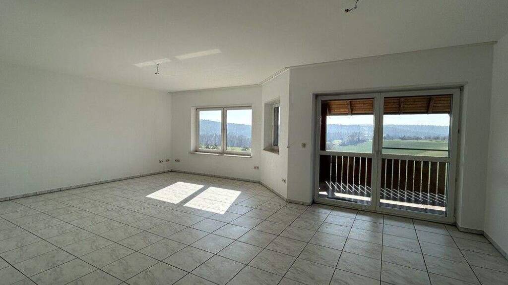 Der offene Wohn- und Essbereich verfügt über eine große Fensterfront sowie einen direkten Zugang zum großen Balkon, der eine herrliche Aussicht auf die Landschaft bietet. Die angrenzende Küche ist mit einem praktischen Abstellraum ausgestattet und bietet ausreichend Platz.