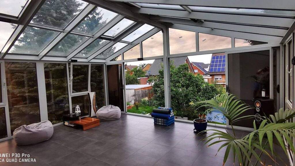 Mit insgesamt 6 Zimmern bietet das Haus ideale Voraussetzungen für Familien: großzügiger Wohn- und Essbereich mit direktem Zugang zum Wintergarten 4 Schlafzimmer separates Büro (Homeoffice geeignet) 2 Badezimmer (EG mit Dusche & Bidet, OG mit Dusche, Bidet & Jacuzzi) sorgen für zusätzlichen Komfort im Alltag. Der lichtdurchflutete Wintergarten (33 m²) mit Fußbodenheizung und Klimaanlage stellt ein besonderes Highlight dar und erweitert den Wohnraum ganzjährig. Ein Tunnelkamin im Wohnbereich schafft eine angenehme Atmosphäre und zusätzliche Wärme in den Wintermonaten.