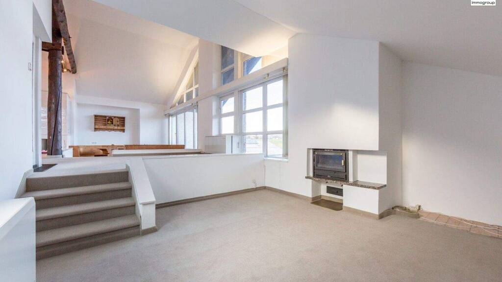 Die Dachgeschosswohnung in split-level-Bauweise verfügt über einen großzügigen offenen Grundriss mit großen Fenstern und hohen Decken.
