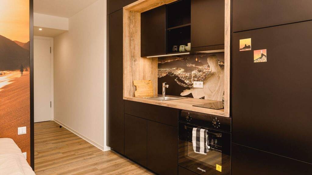 Urban Living in Brazilian Style In a central location in Rostock, 180 fully furnished lifestyle apartments ranging from approx. 18 to 42 m² await you. Each apartment is high-quality furnished, features its own kitchen and a private bathroom in the distinctive Brazilian style – compact, modern and perfectly designed. Ideal for students, commuters, interns and young professionals.