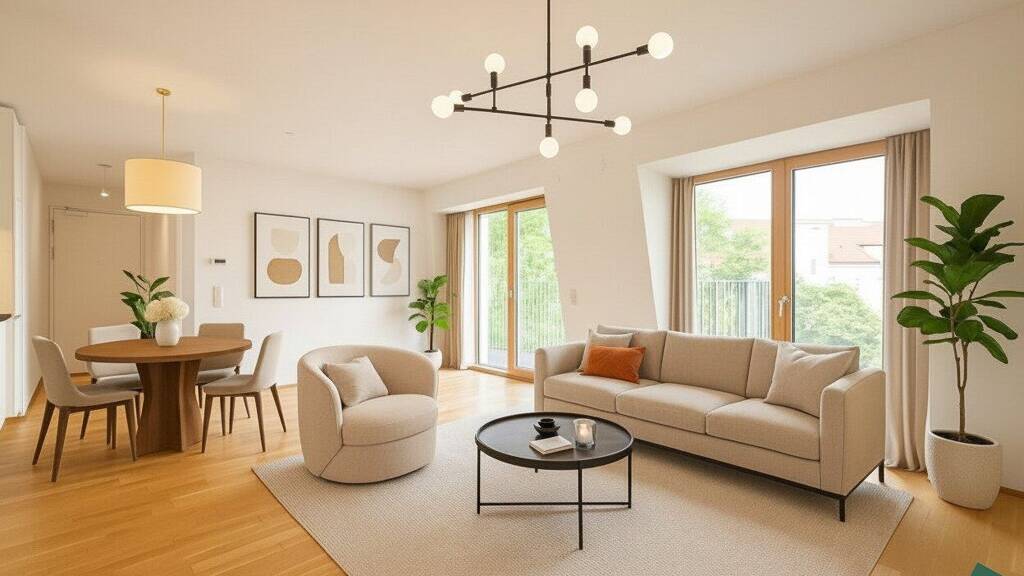 Die in diesem Exposé enthaltenen Bilder dienen der Veranschaulichung und können teilweise computergenerierte Visualisierungen (Renderings) beinhalten. Diese Darstellungen sollen einen Eindruck von der möglichen Gestaltung der Immobilie vermitteln, stellen jedoch keine verbindliche Beschaffenheitsangabe dar. Die abgebildeten Möbel und Einrichtungsgegenstände dienen ausschließlich der Illustration und sind nicht Bestandteil des Kauf- oder Mietgegenstandes.